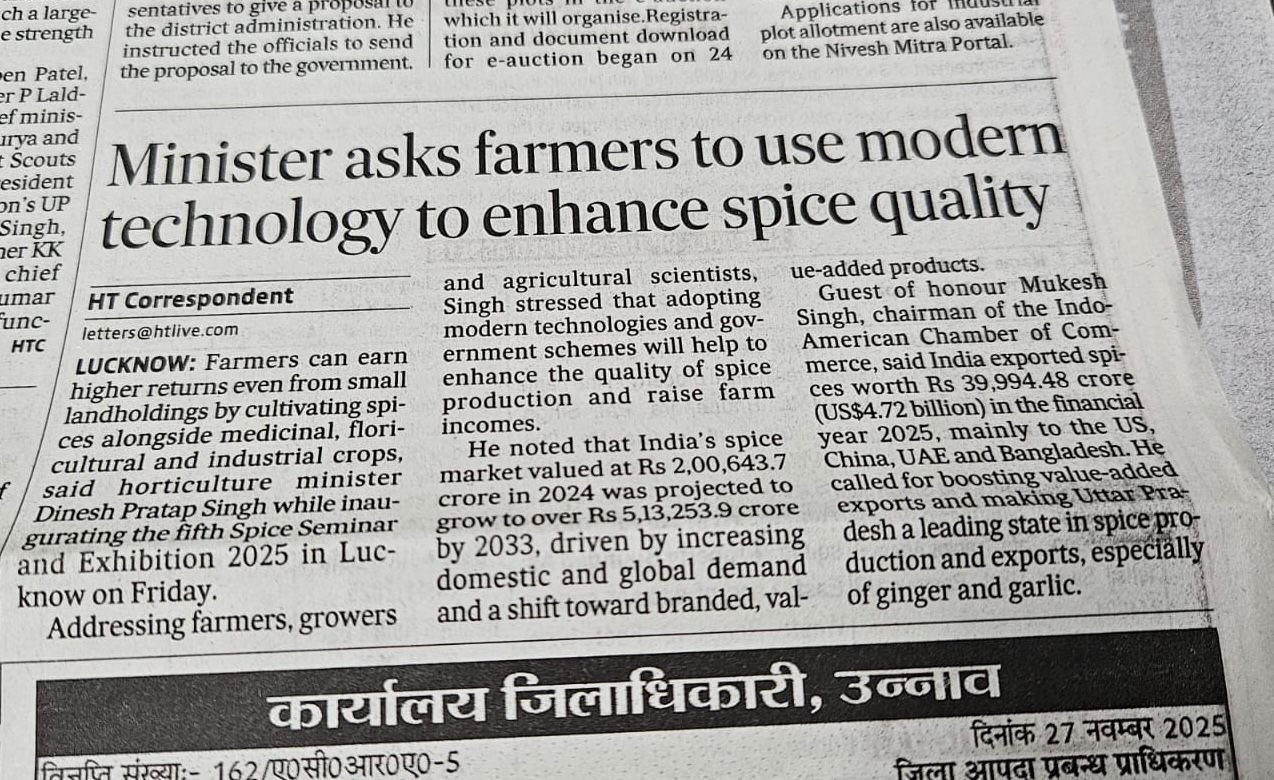 From established industry leaders and legacy spice manufacturers to ambitious emerging startups, Spices Expo 2025 brought together the finest players from across India’s vibrant spice ecosystem on one dynamic and influential platform. This landmark gathering served as a powerful reflection of the strength, diversity, and immense potential of the Indian spice industry, while also highlighting the evolving trends shaping its future. Notably, the expo reinforced Uttar Pradesh’s growing prominence as a key contributor to the national spice economy, emerging as a hub for innovation, trade, and scalable MSME-led growth.